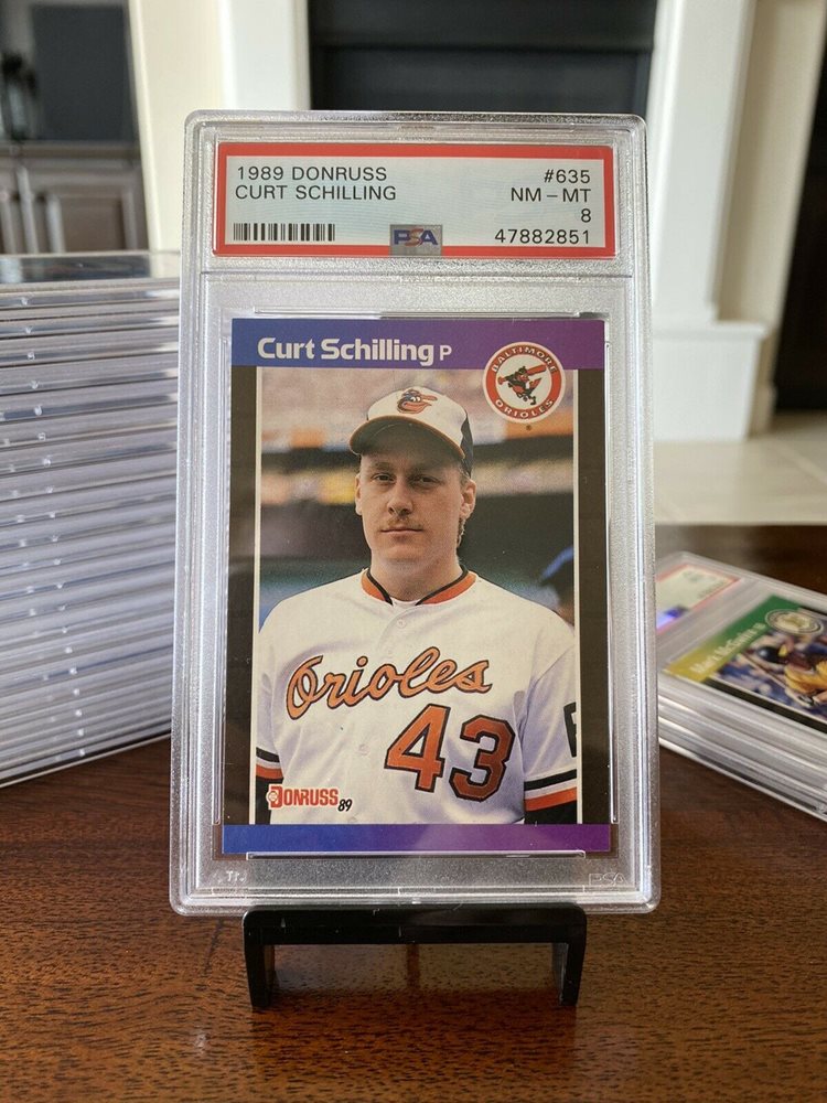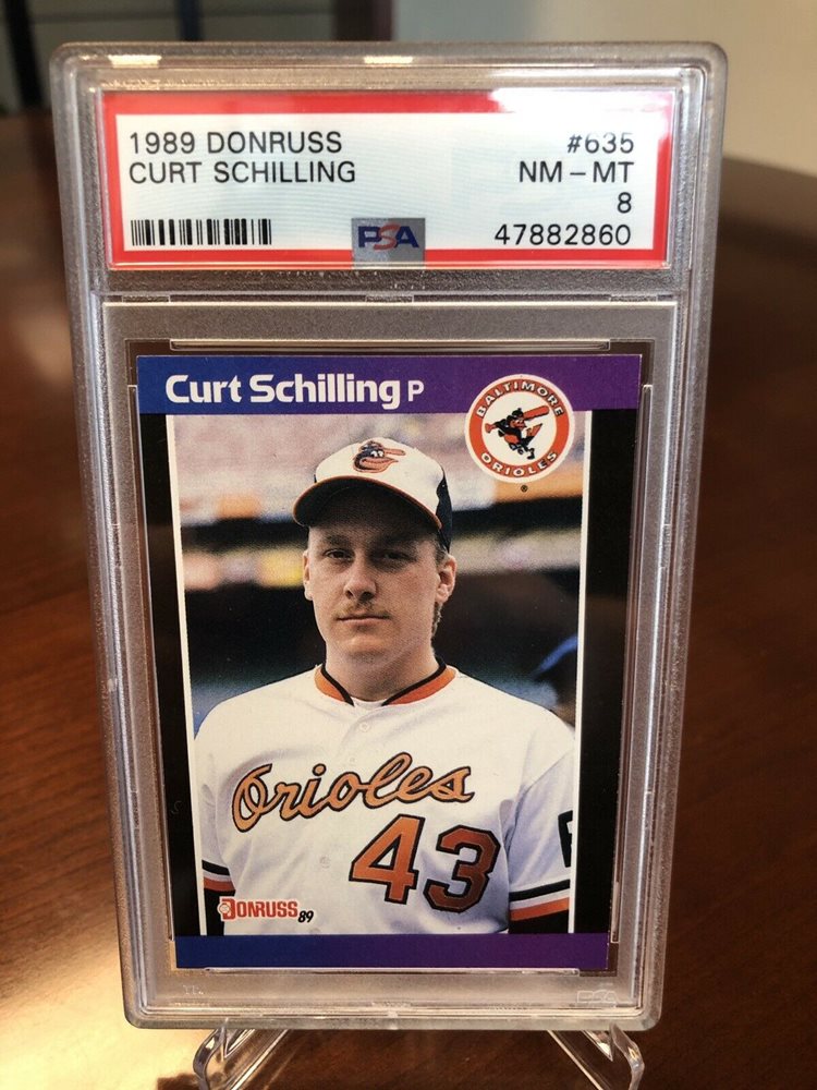 & many more.have lots of other baseball & hockey sets upon request. Curt schilling 1989 donruss #635 rookie card near mint to mint $3.95. His 1990 donruss rookie card isn't the most expensive in the set but it still holds a little value in top grade. The cards feature a distinctive black side border with an alternating stripe on the side. Recently it has been selling for slightly more but each previous year has it selling on average at mid $350 and then spiking. Curt schilling 1990 topps rookie card #97 baltimore. Sets contain many rookies & stars.