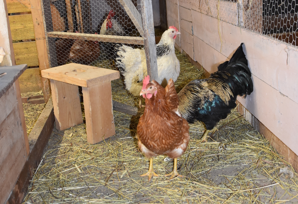 Portforbud Høns , Han Sier At Høns Og Hane Stort Sett Er Inne I Hønsegården, Men At De På Kveldstid Har Fått Lov Til Å Gå Fritt For Å Ete Gress, Mark Og Biller.