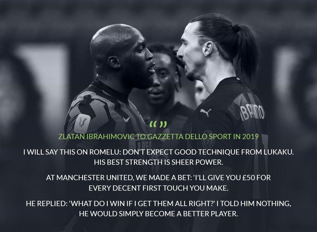 I'll give you €500 for every time you get your first touch right tonight 😂🤣 allora qui è chiaro: Fans Think Romelu Lukaku Sent A Message To Zlatan Ibrahimovic Last Night Sportbible